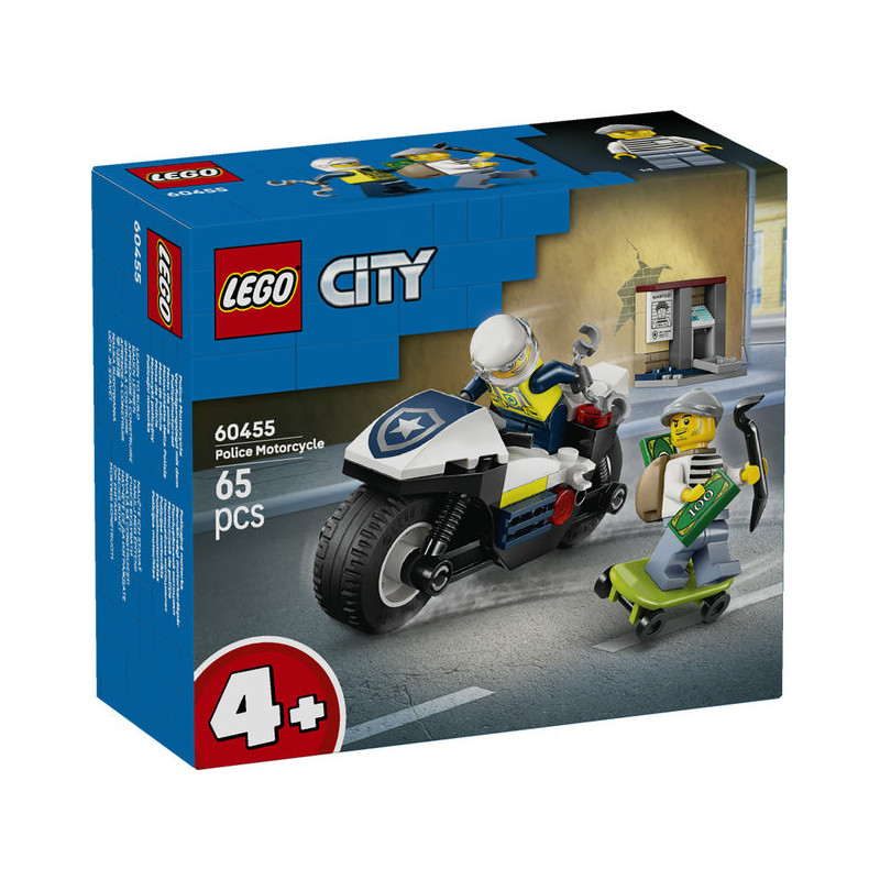 Surprise your young action hero with this exciting LEGO City Police Motorcycle Chase toy for 4+ year old boys and girls (60455). The building set features a cool police motorbike toy with wide tyres, a crook’s getaway skateboard and an opening mini-cash machine with a toy banknote. Just add the police officer and crook LEGO minifigures for hours of imaginative play and storytelling. The easy-build police vehicle playset also includes a LEGO Starter Brick element and a pictorial guide. Or you can take your everyday hero on an exciting journey of creativity using the digital instructions in the LEGO Builder app. Here, kids can zoom in and rotate models in 3D, track their progress as they build, and explore and save other sets.