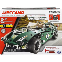 Meccano 5 in 1 Roadster Cabriolet has one roadster with five builds! Give your young car fanatic a fun and exciting model to build with the five-in-one Roadster! Not just a thrilling building project, this roadster packs serious power. Once constructed, pull it back, let go and watch it take off down the open road! Set at a novice difficulty level, builders will have fun assembling then reassembling their own sports car! All the tools needed to assemble this stylish vehicle are included. For an authentic building experience, each set comes with metal nuts and bolts, as well as an easy-to-understand instruction guide. While builders piece together this S.T.E.M. kit, concepts from the fields of science, technology, engineering and maths will come to life! Once built, young mechanics can use the decal sheet to customize their car with cool decals! For an exciting and educational project, drive home Meccano’s Roadster.