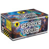 Space Race fires effects in a fan shape and includes red, white, and blue stars, golden palms and a spectacular finale of brocade cascading stars.