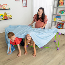 Just add bedsheets for endless fun! Crazy Fort is powered by a child's imagination. A single Crazy Fort Kit contains 25 geometrically precise balls and 44 sticks that connect to create a multitude of possible play structures. Simply throw a bed sheet over top and watch their creativity flourish. A rocket today, an undiscovered cave tomorrow, a princess castle one day and a wild horse in a corral next week are all possible with Crazy Forts. Toys that promote collaborative play between boys and girls are few and far between. The more they have, the better it gets as multiple kit structures are even more impressive.