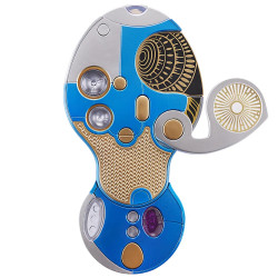 In its closed position the sonic can be used with the emitter extended or retracted. It has three basic sounds and light combinations activated by different numbers of button press. You can also extend the viewer/analyser arm and in addition you can also open the sonic completely by rotating the lower section 180 degrees left or right. Opening and closing the sonic activates an on/off sound and all other functions are the same, but in the open position the internal power crystal glows.