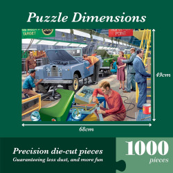 ILLUSTRATED BY VICTOR MCLINDON: This jigsaw puzzle for adults is a beautifully illustrated 1000 piece puzzle featuring a dynamic design bringing the scene to life, taking you straight to the car factory