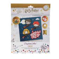 Introducing the "Flying High" Crystal Art Card Kit, featuring the beloved trio, Harry, Hermione & Ron, from the Harry Potter series. Officially licensed, this card is a delightful activity for fans who wish to engage with the Wizarding World in a sparkling new way.
