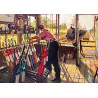 This 500 piece puzzle depicts one of the very first railway posters created for the newly formed British Railways in 1948. Illustrated by the artist Terence Cuneo, it features the interior of the busy, one-man signal of Greenwood Signal Box at New Barnet, with an A4 Pacific steam locomotive hurtling towards it.