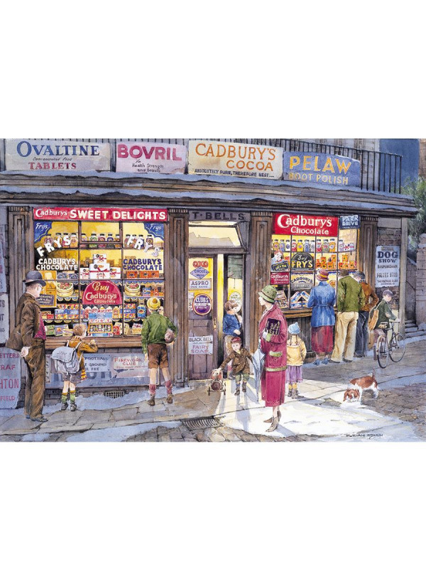 Crowds peer at the delicious treats that the corner shop has to offer as they trudge home in the melting snow. Brian Eden recreates the famous adverts from the past, when children would spend all their pennies on Cadbury’s chocolate and Fry’s Turkish Delight.
