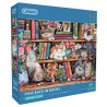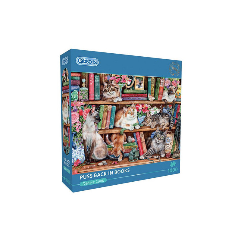Experience the joy of assembling a puzzle that combines the warmth of cuddly kittens with the allure of a well-stocked bookshelf, in Puss Back in Books!