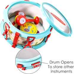 Set includes - Drum and drumsticks, tambourine, 2 castanets, 2 maracas; all in fun, vibrant colours. BPA free and safety tested