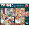 ‘Live Entertainment!’ is the title of this fantastic Wasgij Mystery 1,000 piece jigsaw puzzle. As the night wears on and the food dished up to the hungry customers they realise the sign promised ‘Live Entertainment’ and ask the waitress what the act will be at in this quiet crabbiemor guest house. But what surprise does she have lined up to get these folks hooting and crying out for an encore? Wasgij Mystery is the ‘What happens next?’ puzzle concept where puzzlers have to use their imagination and the clues provided to piece together what the scene printed on the box will look like after a sequence of events plays out. The finished size of the puzzle measures 68 x 49 cm (approximately) and the jigsaws have been produced using a high quality cardboard and precision die-cutting techniques to ensure every jigsaw piece maintains its original shape time and time again. So why is Wasgij so popular? With traditional jigsaws the puzzler builds the image that they can see on the box. With Wasgij they have to build an image that is different to that shown on the box. Although we give a few clues, Wasgij really challenges the puzzler to use their imagination. Put that together with great drawings and pictorial humour and it is no surprise that Wasgij has topped the jigsaw puzzle charts for so many years. This entertaining Wasgij mystery jigsaw puzzle was produced by Jumbo’s artist – Graham Thompso