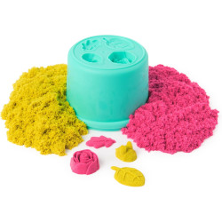 MAGIC BLOOMING FLOWER: Press to reveal blooming flowers with Kinetic Sand SquishBlossom. Includes 227g neon pink and yellow sand, a flower mould and pot with more moulds. Mix sand colours to create coral orange