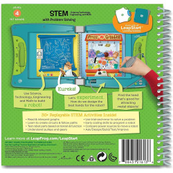 The LeapFrog LeapStart LeapFrog LeapStart Preschool STEM (Science, Technology, Engineering and Maths) and Teamwork Activity Book is jam-packed with 40+ replayable activities that engage kids ages 3-5 at the Preschool level to keep them playing and learning for hours. With the LeapStart system, every page talks, sings and jokes with exciting audio interactions that bring learning to life.Join Leap, Lily and the other Letter Factory characters on a mission to make things work. Create energy from wind or solar power and then save the day by turning on the electricity. "Clip" wires and "screw in" screws to build a sound machine. Then program the sound machine using simple coding. Learn about sources that generate light and energy and experiment with sun and shade, using scientific approaches to help grow a healthy garden. With this LeapStart book, kids explore 16 key Preschool STEM and teamwork skills, including exploring data through simple graphs, experimenting with trial and error, using tools to solve problems and more.