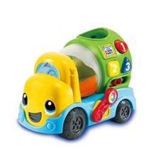 Get to work mixing colours with the popping colour mixer truck. Drop one of the colourful balls into the adorable construction truck and the mixer will light-up to match the colour of the ball. Add another ball and press the lever to watch the balls tumble around and “mix” together to change the colour of the mixer and learn how new colours are created. Buttons on the side of the truck teach colours, shapes and numbers. Use them to answer questions that the truck asks in work mode or add construction sounds to the songs in music mode. Store the balls inside the mixer or open the door to watch them tumble out and play again. It’s colour mixing time!