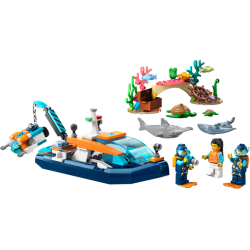 The LEGO underwater set features an inflatable toy boat with lots of realistic features, including a working crane. The set also includes a mini-submarine toy, a coral reef setting and a treasure chest. There are 3 minifigures - the boat's captain and 2 LEGO diver minifigures, plus a manta ray, hammerhead LEGO shark, crab, 2 fish and 2 turtle sea animal figures as well as lots of story-inspiring accessories. Let the LEGO Builder app guide kids on an intuitive building adventure. They can explore and save virtual playsets, track their own building progress, zoom in and rotate and view models from all angles while they build.
