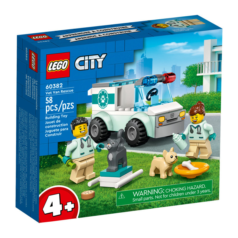 Budding vets and animal-lovers aged 4+ will enjoy this LEGO® City Vet Van Rescue (60382) building set, featuring a toy rescue vehicle with a removable stretcher, 2 veterinary minifigures, dog and cat figures and fun accessories for hours of imaginative pet-care play.