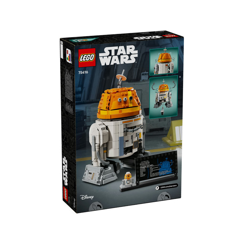 Create a playful display featuring lovable astromech droid Chopper (C1-10P) with this LEGO Star Wars building toy for 10+ year old boys and girls (75416). This buildable of Chopper, as seen in Star Wars: Ahsoka, has lots of realistic details. Move the lever on the back of the Star Wars figure to remotely activate his iconic head movements, pose his arms and legs, fold out a tool from his chest, and more. Chopper’s arms and his centre wheel are detachable so he can be displayed as if his arms and wheel have been retracted into his body. This collectible LEGO Star Wars set is complemented by a standard-size Chopper LEGO Star Wars droid figure, which can be placed on the stand next to the Chopper information plaque to complete an eye-catching centrepiece. Build Together with friends and family – the LEGO Builder app offers a fun and collaborative experience when building this set. This buildable Star Wars toy makes an out-of-this-world gift for 10+ year old boys, girls and Star Wars: Ahsoka fans. It's great to play with on its own and it can also be combined with other LEGO Star Wars building sets (sold separately) in the extensive range.
