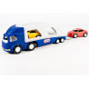 Kids will love this classic Little Tikes Big Car Carrier! This car hauler packs in hours of fun… and two toy sports cars! The giant rig comes with two sleek sports cars and the ramp flips down to load the cars inside.