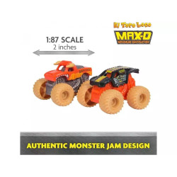 2 EXCLUSIVE MINI MONSTER JAM TRUCKS: Collect Monster Jam El Toro Loco and Max-D Truck in 1:87 scale. Each Monster Jam Mini truck is packed with awesome details and graphics, just like its large-scale version