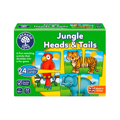 A jungle version of our bestselling Farmyard Heads & Tails. Match the friendly animal heads and tails in this fun first activity for very young children. As children grow in confidence and ability, use the cards in a simple game of pairs to develop first gameplay skills such as memory and turn taking.