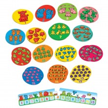 A giant floor activity, counting and memory game, with supersize cards for even more fun and play value! These include a variety of friendly characters to pair and count, helping children learn to count up to the 15 with the help of the handy reference board.
