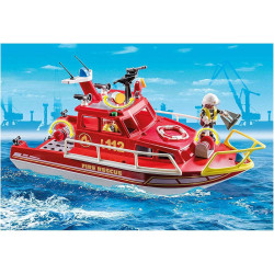 Answer sea emergencies quickly with the PLAYMOBIL City Action Fire Rescue Boat. The set features a rescue boat which floats on water and includes an underwater motor for added fun. There is a working winch at the front to lower the anchor with and one at the back to lower the hook. There is also a hidden storage compartment at the front of the boat and the lights at the top can be rotated and moved around.