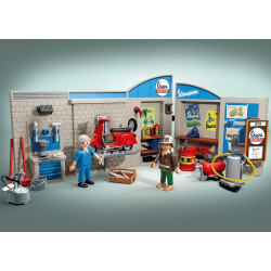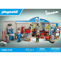 Iconic DIY Fun: Experience the 1960s with the detailed Vespa Garage. Equipped with a functional lifting platform, removable wheels for authentic wheel changes, and versatile accessories