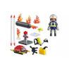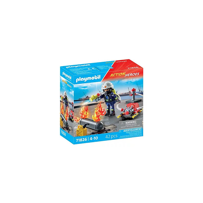 The detailed firefighter figure comes equipped with a removable helmet and gloves, while the set includes lifelike accessories like a gas tank, water hoses, and an oil canister. This exciting PLAYMOBIL set sparks imaginative adventures, putting kids at the heart of heroic firefighting action.