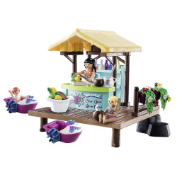 How about a fun boat trip today? The children immediately start running to the beach. Right next to the inviting juice bar, the paddle boats are ready and waiting for passengers. Full of energy, the children jump straight into the paddle boats and off they go on their merry ride. After a long boat trip, they go to the juice bar. Here the friendly barmaid serves delicious fruit cocktails. This is how to enjoy a holiday! Playset contains three PLAYMOBIL figures, a woman and two children, two paddle boats, a juice bar with equipment and many other extras for a fun day at the beach. The boats float in the water.