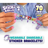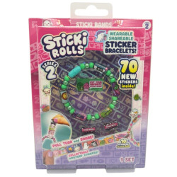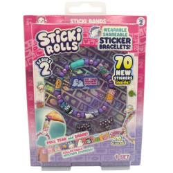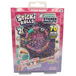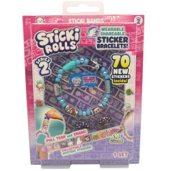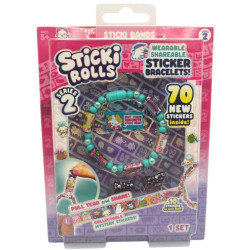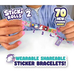 Introducing the all new Sticki Rolls Sticki Bands Series 2, with an amazing new range of wearable, shareable sticker bracelets to collect! No more need for sticker sheets: transform the fun of sticker sharing into fashionable accessories with Sticki Rolls. Each Sticki Band bracelet holds 5 rolls of stickers, each containing 10 unique, Kawaii-themed designs, making it easy to pull, twist, and stick. Two additional MYSTERY REVEAL Sticki Rolls inside for a total of 70 Stickers included! Decorate your phone, water bottle, or laptop, or trade them with friends to build your collections. With our unique Quick-Grip Clasp system, swapping out sticker rolls is a breeze, ensuring endless customization possibilities. Perfect for all ages 5 and up, Sticki Rolls are the first-ever wearable, shareable sticker bracelets! Styles vary