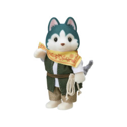 Meet Big Brother Bruce, the adventurous Husky older brother with a distinctive blue-grey fur pattern. Dressed in a charming outfit complete with a bright yellow bandana, Bruce is always ready for excitement!