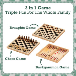 Toyrific Traditional 3 in 1 Wooden Board Game Set Chess Draughts Backgammon