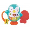 Rattle, soothe and learn with the Little Friendlies musical penguin! This cute penguin has an easy to grip handle with two fun rattle play pieces that will move around when the rattle is shaken. Fun sound effects will also play with the motion sensor is activated. The penguin has 3 press buttons that will help baby learn animal names and their sounds, colours and numbers and features a red fish teether to soothe the gums when teething. A flashing heart attracts babies attention and lights up when sounds play. Includes four happy songs and 12 fun melodies.