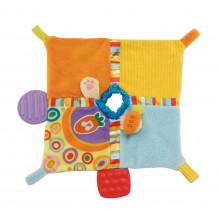 Cute bunny with 3 ways to play: hand puppet, grab toy and soft comforter. Features detachable blanket and soft textured teethers.