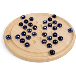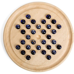 This wooden Solitaire set features shiny marbles on a smart, circular wooden board. A classic game of strategy for one player, this set includes a grooved perimeter to store marbles when they're not in play. An ideal way to develop the strategic mind from an early age. The wooden board is made from high quality, responsibly source materials. Conforms to current European safety standards. Age 3+ years. Diameter: 230mm. Consists of 34 play pieces.